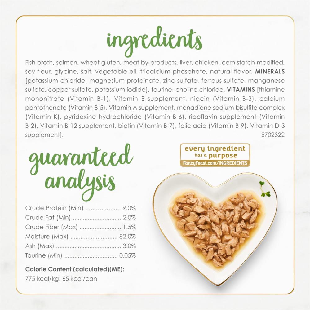 {"id":1853029777523,"title":"Fancy Feast Gravy Lovers Salmon Canned Cat Food","handle":"fancy-feast-gravy-lovers-salmon-canned-cat-food","description":"Delicious chunks with salmon in a rich seared salmon flavor gravy.\u003ch2\u003eIngredients\u003c\/h2\u003eFish broth, salmon, liver, wheat gluten, meat by-products, corn starch-modified, chicken, artificial and natural flavors, soy flour, added color (Red 3 and other color), salt, calcium phosphate, potassium chloride, natural seared salmon flavor, taurine, magnesium sulfate, choline chloride, thiamine mononitrate, Vitamin E supplement, zinc sulfate, ferrous sulfate, niacin, calcium pantothenate, copper sulfate, Vitamin A supplement, manganese sulfate, menadione sodium bisulfite complex (source of Vitamin K activity), pyridoxine hydrochloride, riboflavin supplement, Vitamin B-12 supplement, biotin, folic acid, Vitamin D-3 supplement, potassium iodide.\u003ch2\u003eGuaranteed Analysis\u003c\/h2\u003e\u003ctable\u003e\n\u003ctr\u003e\n\u003cth\u003eNutrient\u003c\/th\u003e\n\u003cth\u003eGuaranteed Units\u003c\/th\u003e\n\u003c\/tr\u003e\n\u003ctr\u003e\n\u003ctd\u003eCrude Protein\u003c\/td\u003e\n\u003ctd\u003e9.0% min\u003c\/td\u003e\n\u003c\/tr\u003e\n\u003ctr\u003e\n\u003ctd\u003eCrude Fat\u003c\/td\u003e\n\u003ctd\u003e2.0% min\u003c\/td\u003e\n\u003c\/tr\u003e\n\u003ctr\u003e\n\u003ctd\u003eCrude Fiber\u003c\/td\u003e\n\u003ctd\u003e1.5% max\u003c\/td\u003e\n\u003c\/tr\u003e\n\u003ctr\u003e\n\u003ctd\u003eMoisture\u003c\/td\u003e\n\u003ctd\u003e82.0% max\u003c\/td\u003e\n\u003c\/tr\u003e\n\u003ctr\u003e\n\u003ctd\u003eAsh\u003c\/td\u003e\n\u003ctd\u003e3.0% max\u003c\/td\u003e\n\u003c\/tr\u003e\n\u003ctr\u003e\n\u003ctd\u003eTaurine\u003c\/td\u003e\n\u003ctd\u003e0.05% min\u003c\/td\u003e\n\u003c\/tr\u003e\n\u003c\/table\u003e","published_at":"2018-12-21T10:36:35-05:00","created_at":"2018-12-20T15:08:09-05:00","vendor":"Fancy Feast","type":"Wet Food","tags":["All Breeds","All Stages","Canned Food","Cat","Contains Grain","Endless Aisles","Fancy Feast","Food","Wet Food"],"price":2294,"price_min":2294,"price_max":2294,"available":true,"price_varies":false,"compare_at_price":null,"compare_at_price_min":0,"compare_at_price_max":0,"compare_at_price_varies":false,"variants":[{"id":18014357717107,"title":"3-oz, case of 24","option1":"3-oz, case of 24","option2":null,"option3":null,"sku":"27710","requires_shipping":true,"taxable":true,"featured_image":null,"available":true,"name":"Fancy Feast Gravy Lovers Salmon Canned Cat Food - 3-oz, case of 24","public_title":"3-oz, case of 24","options":["3-oz, case of 24"],"price":2294,"weight":2041,"compare_at_price":null,"inventory_management":"endless-aisles-custom-app","barcode":"00050000578429","requires_selling_plan":false,"selling_plan_allocations":[]}],"images":["\/\/shop.safaristanspetcenter.com\/cdn\/shop\/files\/C300789-202508141458530993-1.png?v=1761079275","\/\/shop.safaristanspetcenter.com\/cdn\/shop\/files\/C300789-202508141458550150-2.png?v=1761079275","\/\/shop.safaristanspetcenter.com\/cdn\/shop\/files\/C300789-202508141458560227-3.png?v=1761079275","\/\/shop.safaristanspetcenter.com\/cdn\/shop\/files\/C300789-202508141458570213-4.png?v=1761079275","\/\/shop.safaristanspetcenter.com\/cdn\/shop\/files\/C300789-202508141458580277-5.png?v=1761079275","\/\/shop.safaristanspetcenter.com\/cdn\/shop\/files\/C300789-202508141458590243-6.png?v=1761079275","\/\/shop.safaristanspetcenter.com\/cdn\/shop\/files\/C300789-202508141459000150-7.png?v=1761079275"],"featured_image":"\/\/shop.safaristanspetcenter.com\/cdn\/shop\/files\/C300789-202508141458530993-1.png?v=1761079275","options":["Title"],"media":[{"alt":"Fancy Feast Gravy Lovers Salmon Canned Cat Food","id":38378124771583,"position":1,"preview_image":{"aspect_ratio":1.0,"height":1000,"width":1000,"src":"\/\/shop.safaristanspetcenter.com\/cdn\/shop\/files\/C300789-202508141458530993-1.png?v=1761079275"},"aspect_ratio":1.0,"height":1000,"media_type":"image","src":"\/\/shop.safaristanspetcenter.com\/cdn\/shop\/files\/C300789-202508141458530993-1.png?v=1761079275","width":1000},{"alt":"Fancy Feast Gravy Lovers Salmon Canned Cat Food","id":38378124804351,"position":2,"preview_image":{"aspect_ratio":1.0,"height":1000,"width":1000,"src":"\/\/shop.safaristanspetcenter.com\/cdn\/shop\/files\/C300789-202508141458550150-2.png?v=1761079275"},"aspect_ratio":1.0,"height":1000,"media_type":"image","src":"\/\/shop.safaristanspetcenter.com\/cdn\/shop\/files\/C300789-202508141458550150-2.png?v=1761079275","width":1000},{"alt":"Fancy Feast Gravy Lovers Salmon Canned Cat Food","id":38378124837119,"position":3,"preview_image":{"aspect_ratio":1.0,"height":1000,"width":1000,"src":"\/\/shop.safaristanspetcenter.com\/cdn\/shop\/files\/C300789-202508141458560227-3.png?v=1761079275"},"aspect_ratio":1.0,"height":1000,"media_type":"image","src":"\/\/shop.safaristanspetcenter.com\/cdn\/shop\/files\/C300789-202508141458560227-3.png?v=1761079275","width":1000},{"alt":"Fancy Feast Gravy Lovers Salmon Canned Cat Food","id":38378124869887,"position":4,"preview_image":{"aspect_ratio":1.0,"height":1000,"width":1000,"src":"\/\/shop.safaristanspetcenter.com\/cdn\/shop\/files\/C300789-202508141458570213-4.png?v=1761079275"},"aspect_ratio":1.0,"height":1000,"media_type":"image","src":"\/\/shop.safaristanspetcenter.com\/cdn\/shop\/files\/C300789-202508141458570213-4.png?v=1761079275","width":1000},{"alt":"Fancy Feast Gravy Lovers Salmon Canned Cat Food","id":38378124902655,"position":5,"preview_image":{"aspect_ratio":1.0,"height":1000,"width":1000,"src":"\/\/shop.safaristanspetcenter.com\/cdn\/shop\/files\/C300789-202508141458580277-5.png?v=1761079275"},"aspect_ratio":1.0,"height":1000,"media_type":"image","src":"\/\/shop.safaristanspetcenter.com\/cdn\/shop\/files\/C300789-202508141458580277-5.png?v=1761079275","width":1000},{"alt":"Fancy Feast Gravy Lovers Salmon Canned Cat Food","id":38378124935423,"position":6,"preview_image":{"aspect_ratio":1.0,"height":1000,"width":1000,"src":"