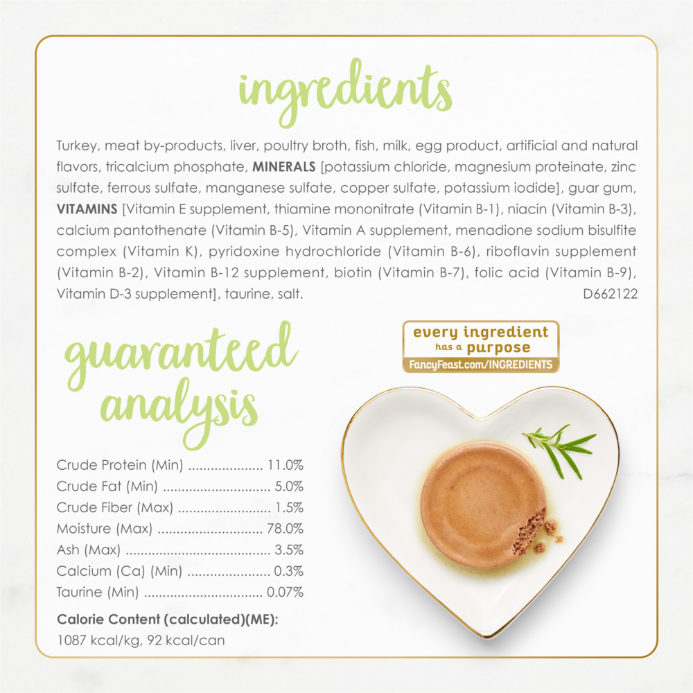 {"id":1852982198387,"title":"Fancy Feast Kitten Tender Turkey Feast Canned Cat Food","handle":"fancy-feast-kitten-tender-turkey-feast-canned-cat-food","description":"A delightfully smooth paté with tantalizing turkey, specially formulated for your kitten.\u003ch2\u003eIngredients\u003c\/h2\u003eTurkey, liver, meat by-products, poultry broth, milk, egg product, artificial and natural flavors, calcium phosphate, guar gum, potassium chloride, added color, magnesium sulfate, salt, taurine, Vitamin E supplement, zinc sulfate, thiamine mononitrate, ferrous sulfate, niacin, copper sulfate, manganese sulfate, calcium pantothenate, Vitamin A supplement, menadione sodium bisulfite complex (source of Vitamin K activity), pyridoxine hydrochloride, riboflavin supplement, Vitamin B-12 supplement, biotin, folic acid, Vitamin D-3 supplement, potassium iodide.\u003ch2\u003eGuaranteed Analysis\u003c\/h2\u003e\u003ctable\u003e\n\u003ctr\u003e\n\u003cth\u003eNutrient\u003c\/th\u003e\n\u003cth\u003eGuaranteed Units\u003c\/th\u003e\n\u003c\/tr\u003e\n\u003ctr\u003e\n\u003ctd\u003eCrude Protein\u003c\/td\u003e\n\u003ctd\u003e11.0% min\u003c\/td\u003e\n\u003c\/tr\u003e\n\u003ctr\u003e\n\u003ctd\u003eCrude Fat\u003c\/td\u003e\n\u003ctd\u003e5.0% min\u003c\/td\u003e\n\u003c\/tr\u003e\n\u003ctr\u003e\n\u003ctd\u003eCrude Fiber\u003c\/td\u003e\n\u003ctd\u003e1.5% max\u003c\/td\u003e\n\u003c\/tr\u003e\n\u003ctr\u003e\n\u003ctd\u003eMoisture\u003c\/td\u003e\n\u003ctd\u003e78.0% max\u003c\/td\u003e\n\u003c\/tr\u003e\n\u003ctr\u003e\n\u003ctd\u003eAsh\u003c\/td\u003e\n\u003ctd\u003e3.5% max\u003c\/td\u003e\n\u003c\/tr\u003e\n\u003ctr\u003e\n\u003ctd\u003eCalcium\u003c\/td\u003e\n\u003ctd\u003e0.3% min\u003c\/td\u003e\n\u003c\/tr\u003e\n\u003ctr\u003e\n\u003ctd\u003eTaurine\u003c\/td\u003e\n\u003ctd\u003e0.07% min\u003c\/td\u003e\n\u003c\/tr\u003e\n\u003c\/table\u003e","published_at":"2018-12-21T10:37:02-05:00","created_at":"2018-12-20T14:43:40-05:00","vendor":"Fancy Feast","type":"Wet Food","tags":["All Breeds","Canned Food","Cat","Endless Aisles","Fancy Feast","Food","Kitten","Wet Food"],"price":2294,"price_min":2294,"price_max":2294,"available":true,"price_varies":false,"compare_at_price":null,"compare_at_price_min":0,"compare_at_price_max":0,"compare_at_price_varies":false,"variants":[{"id":18014278385779,"title":"3-oz, case of 24","option1":"3-oz, case of 24","option2":null,"option3":null,"sku":"25482","requires_shipping":true,"taxable":true,"featured_image":null,"available":true,"name":"Fancy Feast Kitten Tender Turkey Feast Canned Cat Food - 3-oz, case of 24","public_title":"3-oz, case of 24","options":["3-oz, case of 24"],"price":2294,"weight":2041,"compare_at_price":null,"inventory_management":"endless-aisles-custom-app","barcode":"00050000575015","requires_selling_plan":false,"selling_plan_allocations":[]}],"images":["\/\/shop.safaristanspetcenter.com\/cdn\/shop\/files\/C300630-202509250050560487-1.png?v=1761079209","\/\/shop.safaristanspetcenter.com\/cdn\/shop\/files\/C300630-202509250051070907-10.png?v=1761079209","\/\/shop.safaristanspetcenter.com\/cdn\/shop\/files\/C300630-202509250050580737-2.png?v=1761079209","\/\/shop.safaristanspetcenter.com\/cdn\/shop\/files\/C300630-20250925005100047-3.png?v=1761079210","\/\/shop.safaristanspetcenter.com\/cdn\/shop\/files\/C300630-202509250051010250-4.png?v=1761079210","\/\/shop.safaristanspetcenter.com\/cdn\/shop\/files\/C300630-202509250051020343-5.png?v=1761079210","\/\/shop.safaristanspetcenter.com\/cdn\/shop\/files\/C300630-202509250051030487-6.png?v=1761079210","\/\/shop.safaristanspetcenter.com\/cdn\/shop\/files\/C300630-202509250051040657-7.png?v=1761079210","\/\/shop.safaristanspetcenter.com\/cdn\/shop\/files\/C300630-202509250051050687-8.png?v=1761079210","\/\/shop.safaristanspetcenter.com\/cdn\/shop\/files\/C300630-202509250051060797-9.png?v=1761079210"],"featured_image":"\/\/shop.safaristanspetcenter.com\/cdn\/shop\/files\/C300630-202509250050560487-1.png?v=1761079209","options":["Title"],"media":[{"alt":"Fancy Feast Kitten Tender Turkey Feast Canned Cat Food","id":38378121986303,"position":1,"preview_image":{"aspect_ratio":1.0,"height":1000,"width":1000,"src":"\/\/shop.safaristanspetcenter.com\/cdn\/shop\/files\/C300630-202509250050560487-1.png?v=1761079209"},"aspect_ratio":1.0,"height":1000,"media_type":"image","src":"\/\/shop.safaristanspetcenter.com\/cdn\/shop\/files\/C300630-202509250050560487-1.png?v=1761079209","width":1000},{"alt":"Fancy Feast Kitten Tender Turkey Feast Canned Cat Food","id":38378122019071,"position":2,"preview_image":{"aspect_ratio":1.0,"height":1000,"width":1000,"src":"\/\/shop.safaristanspetcenter.com\/cdn\/shop\/files\/C300630-202509250051070907-10.png?v=1761079209"},"aspect_ratio":1.0,"height":1000,"media_type":"image","src":"\/\/shop.safaristanspetcenter.com\/cdn\/shop\/files\/C300630-202509250051070907-10.png?v=1761079209","width":1000},{"alt":"Fancy Feast Kitten Tender Turkey Feast Canned Cat Food","id":38378122051839,"position":3,"preview_image":{"aspect_ratio":1.0,"height":1000,"width":1000,"src":"\/\/shop.safaristanspetcenter.com\/cdn\/shop\/files\/C300630-202509250050580737-2.png?v=1761079209"},"aspect_ratio":1.0,"height":1000,"media_type":"image","src":"\/\/shop.safaristanspetcenter.com\/cdn\/shop\/files\/C300630-202509250050580737-2.png?v=1761079209","width":1000},{"alt":"Fancy Feast Kitten Tender Turkey Feast Canned Cat Food","id":38378122084607,"position":4,"preview_image":{"aspect_ratio":1.0,"height":1000,"width":1000,"src":"\/\/shop.safaristanspetcenter.com\/cdn\/shop\/files\/C300630-20250925005100047-3.png?v=1761079210"},"aspect_ratio":1.0,"height":1000,"media_type":"image","src":"\/\/shop.safaristanspetcenter.com\/cdn\/shop\/files\/C300630-20250925005100047-3.png?v=1761079210","width":1000},{"alt":"Fancy Feast Kitten Tender Turkey Feast Canned Cat Food","id":38378122117375,"position":5,"preview_image":{"aspect_ratio":1.0,"height":1000,"width":1000,"src":"\/\/shop.safaristanspetcenter.com\/cdn\/shop\/files\/C30