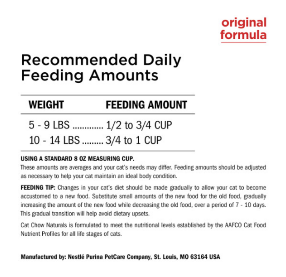 {"id":1852913614963,"title":"Purina Cat Chow Naturals Original Dry Cat Food","handle":"purina-cat-chow-naturals-original-dry-cat-food","description":"Serve your cat a great tasting meal with Purina Cat Chow Naturals Original Cat Kibble featuring high-quality ingredients like real chicken as the #1 ingredient. This wholesome weight management cat food is also made with real salmon and whole grains. Formulated for all life stages, this delicious hairball control cat food follows your cat through their kitten and adult years. Made without artificial flavors, colors or preservatives, each bite delivers more of the ingredients cats need without the ones they don't. Your cat gets a 100% complete and balanced Cat Chow indoor dry cat food at mealtime, and you get the comfort that comes from giving them a natural cat food backed by a trusted brand. With 25 essential vitamins and minerals, this Purina indoor cat food gives cats the nutrition they need to help them live a long, happy life with you. Make this Purina chicken and salmon cat food a part of their daily feeding routine and show your cat you care about their health and wellness.\u003ch2\u003eIngredients\u003c\/h2\u003eChicken By-Product Meal, Corn Gluten Meal, Soy Flour, Ground Whole Wheat, Brewers Rice, Animal Fat Preserved with Mixed-Tocopherols, Corn Meal, Natural Flavor, Chicken, Salmon, Phosphoric Acid, Salt, Calcium Carbonate, Dried Spinach, Choline Chloride, Taurine, Vitamin E Supplement, Zinc Sulfate, Ferrous Sulfate, Manganese Sulfate, Potassium Chloride, Niacin, Copper Sulfate, Vitamin A Supplement, Calcium Pantothenate, Thiamine Mononitrate, Riboflavin Supplement, Vitamin B-12 Supplement, Pyridoxine Hydrochloride, Folic Acid, Vitamin D-3 Supplement, Calcium Iodate, Biotin, Menadione Sodium Bisulfite Complex (Source of Vitamin K Activity, ), Sodium Selenite.\u003ch2\u003eGuaranteed Analysis\u003c\/h2\u003e\u003ctable\u003e\n\u003ctr\u003e\n\u003cth\u003eNutrient\u003c\/th\u003e\n\u003cth\u003eGuaranteed Units\u003c\/th\u003e\n\u003c\/tr\u003e\n\u003ctr\u003e\n\u003ctd\u003eCrude Protein\u003c\/td\u003e\n\u003ctd\u003e38% min\u003c\/td\u003e\n\u003c\/tr\u003e\n\u003ctr\u003e\n\u003ctd\u003eCrude Fat\u003c\/td\u003e\n\u003ctd\u003e13% min\u003c\/td\u003e\n\u003c\/tr\u003e\n\u003ctr\u003e\n\u003ctd\u003eCrude Fiber\u003c\/td\u003e\n\u003ctd\u003e3% max\u003c\/td\u003e\n\u003c\/tr\u003e\n\u003ctr\u003e\n\u003ctd\u003eMoisture\u003c\/td\u003e\n\u003ctd\u003e12% max\u003c\/td\u003e\n\u003c\/tr\u003e\n\u003c\/table\u003e","published_at":"2018-12-22T11:53:43-05:00","created_at":"2018-12-20T14:00:57-05:00","vendor":"Purina Cat Chow","type":"Dry Food","tags":["Adult","All Breeds","All Stages","Cat","Contains Grain","Dry Food","Endless Aisles","Food","Purina Cat Chow"],"price":3193,"price_min":3193,"price_max":3193,"available":true,"price_varies":false,"compare_at_price":null,"compare_at_price_min":0,"compare_at_price_max":0,"compare_at_price_varies":false,"variants":[{"id":18014129619059,"title":"13-lb","option1":"13-lb","option2":null,"option3":null,"sku":"27675","requires_shipping":true,"taxable":true,"featured_image":null,"available":true,"name":"Purina Cat Chow Naturals Original Dry Cat Food - 13-lb","public_title":"13-lb","options":["13-lb"],"price":3193,"weight":5897,"compare_at_price":null,"inventory_management":"endless-aisles-custom-app","barcode":"017800145008","requires_selling_plan":false,"selling_plan_allocations":[]}],"images":["\/\/shop.safaristanspetcenter.com\/cdn\/shop\/files\/C300782-202509250758480850-1.png?v=1761078168","\/\/shop.safaristanspetcenter.com\/cdn\/shop\/files\/C300782-202509250758500117-2.png?v=1761078168","\/\/shop.safaristanspetcenter.com\/cdn\/shop\/files\/C300782-202509250758510350-3.png?v=1761078168","\/\/shop.safaristanspetcenter.com\/cdn\/shop\/files\/C300782-202509250758520227-4.png?v=1761078168"],"featured_image":"\/\/shop.safaristanspetcenter.com\/cdn\/shop\/files\/C300782-202509250758480850-1.png?v=1761078168","options":["Title"],"media":[{"alt":"Purina Cat Chow Naturals Original Dry Cat Food","id":38378058416383,"position":1,"preview_image":{"aspect_ratio":0.974,"height":1027,"width":1000,"src":"\/\/shop.safaristanspetcenter.com\/cdn\/shop\/files\/C300782-202509250758480850-1.png?v=1761078168"},"aspect_ratio":0.974,"height":1027,"media_type":"image","src":"\/\/shop.safaristanspetcenter.com\/cdn\/shop\/files\/C300782-202509250758480850-1.png?v=1761078168","width":1000},{"alt":"Purina Cat Chow Naturals Original Dry Cat Food","id":38378058449151,"position":2,"preview_image":{"aspect_ratio":0.987,"height":1013,"width":1000,"src":"\/\/shop.safaristanspetcenter.com\/cdn\/shop\/files\/C300782-202509250758500117-2.png?v=1761078168"},"aspect_ratio":0.987,"height":1013,"media_type":"image","src":"\/\/shop.safaristanspetcenter.com\/cdn\/shop\/files\/C300782-202509250758500117-2.png?v=1761078168","width":1000},{"alt":"Purina Cat Chow Naturals Original Dry Cat Food","id":38378058481919,"position":3,"preview_image":{"aspect_ratio":1.033,"height":968,"width":1000,"src":"\/\/shop.safaristanspetcenter.com\/cdn\/shop\/files\/C300782-202509250758510350-3.png?v=1761078168"},"aspect_ratio":1.033,"height":968,"media_type":"image","src":"\/\/shop.safaristanspetcenter.com\/cdn\/shop\/files\/C300782-202509250758510350-3.png?v=1761078168","width":1000},{"alt":"Purina Cat Chow Naturals Original Dry Cat Food","id":38378058514687,"position":4,"preview_image":{"aspect_ratio":1.002,"height":998,"width":1000,"src":"\/\/shop.safaristanspetcenter.com\/cdn\/shop\/files\/C300782-202509250758520227-4.png?v=1761078168"},"aspect_ratio":1.002,"height":998,"media_type":"image","src":"\/\/shop.safaristanspetcenter.com\/cdn\/shop\/files\/C300782-202509250758520227-4.png?v=1761078168","width":1000}],"requires_selling_plan":false,"selling_plan_groups":[],"content":"Serve your cat a great tasting meal with Purina Cat Chow Naturals Original Cat Kibble featuring high-quality ingredients like real chicken as the #1 ingredient. This wholesome