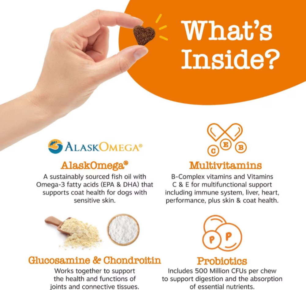 {"id":1853009035379,"title":"Zesty Paws 8-in 1 Multifunctional Bites Chicken 90ct","handle":"zesty-paws-5-in-1-multivitamin-bites-soft-chews-for-dogs","description":"Zesty Paws 8-in 1 Multifunctional Bites Chicken 90ct™ are delicious chewable supplements with over 35 vitamins, minerals, and nutrients. Featuring OptiMSM® and Kaneka Q10®, this nourishing formula may provide powerful daily support for dogs of all ages, sizes, and breeds to keep them feeling healthy and happy for years to come.\u003ch2\u003eIngredients\u003c\/h2\u003e8-in-1 BitesTMActive - Glucosamine HCL (Shell?sh Source), 200 mg OptiMSM® (Methylsulfonylmethane), 100 mg Cod Liver Oil, 100 mg Gut Health Blend (Amylase, Protease, Lipase, Cellulase, Lactase, Bromelain), 90mg 5-Strain Probiotic Blend (Lactobacillus acidophilus, Lactobacillus rhamnosus, Lactobacillus reuteri, Lactobacillus fermentum and Lactobacillus salivarius), 500 million CFU Chondroitin Sulfate (Porcine source), 75 mg Ascorbic Acid (Vitamin C), 20 mg Niacin (Vitamin B3), 18 mg Kaneka Q10® (Coenzyme Q10), 10 mg D-Alpha Tocopherol Acetate (Vitamin E), 8 IU Thiamine (Vitamin B1), 2 mg Vitamin, 1 mg Pantothenic Acid (Vitamin B5) , 1 mg Pyridoxine (Vitamin B6), 1 mg Ribo?avin (Vitamin B2), 1 mg Manganese, 0.6 mg Folic Acid, 210 mcg Biotin, 20 mcg Vitamin D (D3 as Cholecalciferol), 5.5 mcg Vitamin, B12 5 mcgInactive – Chicken, Coconut Glycerin, Flaxseed, Garbanzo Flour, Mixed Tocopherols, Natural Chicken Flavoring, Palm Fruit Oil, Pea Flour, Powdered Cellulose, Pumpkin, Rosemary Extract, Sorbic Acid, Sun?ower LecithinFlavors vary.","published_at":"2018-12-22T11:51:28-05:00","created_at":"2018-12-20T14:57:12-05:00","vendor":"Zesty Paws","type":"","tags":["All Breeds","All Stages","Allergies","Digestive \u0026 Urinary","Digestive Aids","Dog","Endless Aisles","Hip \u0026 Joint Care","Skin \u0026 Coat Care","Skin Care","Soft \u0026 Chewy Treats","Treatments","Vitamins \u0026 Supplements","Zesty Paws"],"price":3297,"price_min":3297,"price_max":3297,"available":true,"price_varies":false,"compare_at_price":null,"compare_at_price_min":0,"compare_at_price_max":0,"compare_at_price_varies":false,"variants":[{"id":18014326292595,"title":"12.7-oz","option1":"12.7-oz","option2":null,"option3":null,"sku":"46846","requires_shipping":true,"taxable":true,"featured_image":null,"available":true,"name":"Zesty Paws 8-in 1 Multifunctional Bites Chicken 90ct - 12.7-oz","public_title":"12.7-oz","options":["12.7-oz"],"price":3297,"weight":358,"compare_at_price":null,"inventory_management":"endless-aisles-custom-app","barcode":"856521007505","requires_selling_plan":false,"selling_plan_allocations":[]}],"images":["\/\/shop.safaristanspetcenter.com\/cdn\/shop\/files\/C330222-202509091238580393-1.png?v=1761081073","\/\/shop.safaristanspetcenter.com\/cdn\/shop\/files\/C330222-202509091238590720-2.png?v=1761081073","\/\/shop.safaristanspetcenter.com\/cdn\/shop\/files\/C330222-202509091239000987-3.png?v=1761081073","\/\/shop.safaristanspetcenter.com\/cdn\/shop\/files\/C330222-202509091239020207-4.png?v=1761081073","\/\/shop.safaristanspetcenter.com\/cdn\/shop\/files\/C330222-202509091239030423-5.png?v=1761081073"],"featured_image":"\/\/shop.safaristanspetcenter.com\/cdn\/shop\/files\/C330222-202509091238580393-1.png?v=1761081073","options":["Title"],"media":[{"alt":"Zesty Paws 8-in 1 Multifunctional Bites Chicken 90ct","id":38378281566463,"position":1,"preview_image":{"aspect_ratio":1.011,"height":989,"width":1000,"src":"\/\/shop.safaristanspetcenter.com\/cdn\/shop\/files\/C330222-202509091238580393-1.png?v=1761081073"},"aspect_ratio":1.011,"height":989,"media_type":"image","src":"\/\/shop.safaristanspetcenter.com\/cdn\/shop\/files\/C330222-202509091238580393-1.png?v=1761081073","width":1000},{"alt":"Zesty Paws 8-in 1 Multifunctional Bites Chicken 90ct","id":38378281599231,"position":2,"preview_image":{"aspect_ratio":1.041,"height":961,"width":1000,"src":"\/\/shop.safaristanspetcenter.com\/cdn\/shop\/files\/C330222-202509091238590720-2.png?v=1761081073"},"aspect_ratio":1.041,"height":961,"media_type":"image","src":"\/\/shop.safaristanspetcenter.com\/cdn\/shop\/files\/C330222-202509091238590720-2.png?v=1761081073","width":1000},{"alt":"Zesty Paws 8-in 1 Multifunctional Bites Chicken 90ct","id":38378281631999,"position":3,"preview_image":{"aspect_ratio":1.116,"height":896,"width":1000,"src":"\/\/shop.safaristanspetcenter.com\/cdn\/shop\/files\/C330222-202509091239000987-3.png?v=1761081073"},"aspect_ratio":1.116,"height":896,"media_type":"image","src":"\/\/shop.safaristanspetcenter.com\/cdn\/shop\/files\/C330222-202509091239000987-3.png?v=1761081073","width":1000},{"alt":"Zesty Paws 8-in 1 Multifunctional Bites Chicken 90ct","id":38378281664767,"position":4,"preview_image":{"aspect_ratio":1.054,"height":949,"width":1000,"src":"\/\/shop.safaristanspetcenter.com\/cdn\/shop\/files\/C330222-202509091239020207-4.png?v=1761081073"},"aspect_ratio":1.054,"height":949,"media_type":"image","src":"\/\/shop.safaristanspetcenter.com\/cdn\/shop\/files\/C330222-202509091239020207-4.png?v=1761081073","width":1000},{"alt":"Zesty Paws 8-in 1 Multifunctional Bites Chicken 90ct","id":38378281697535,"position":5,"preview_image":{"aspect_ratio":0.994,"height":1006,"width":1000,"src":"\/\/shop.safaristanspetcenter.com\/cdn\/shop\/files\/C330222-202509091239030423-5.png?v=1761081073"},"aspect_ratio":0.994,"height":1006,"media_type":"image","src":"\/\/shop.safaristanspetcenter.com\/cdn\/shop\/files\/C330222-202509091239030423-5.png?v=1761081073","width":1000}],"requires_selling_plan":false,"selling_plan_groups":[],"content":"Zesty Paws 8-in 1 Multifunctional Bites Chicken 90ct™ are delicious chewable supplements with over 35 vitamins, minerals, and nutrients. Featuring OptiMSM® and Kaneka Q10®, this nourishing formula may provide powerful daily support for dogs of all ages, sizes, and breeds to keep them feeling healthy and happy for years to come.\u003ch2\u003eIngredients\u003c\/h2\u003e8-in-1 BitesTMActive - G