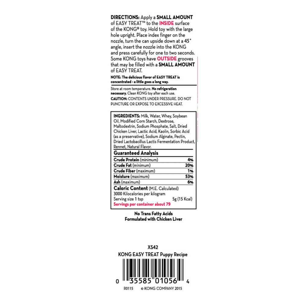 {"id":1852993437811,"title":"Kong Puppy Easy Treat","handle":"kong-puppy-easy-treat","description":"KONG Puppy Easy Treat makes KONG stuffing easy. Simply apply the tasty paste to the inside of a KONG Puppy toy. Specially formulated chicken liver flavor is perfect for a puppy's sensitive tummy.Easy to dispensePerfect for use with any KONG Puppy rubber toyDelicious chicken liver flavor irresistible to most dogsFormulated for sensitive puppy tummiesMade in USA from Globally Sourced Materials\u003ch2\u003eIngredients\u003c\/h2\u003eMilk, Water, Soybean Oil, Whey Protein Concentrate, Dextrose, Modified Corn Starch, Sodium Phosphate, Dried Chicken, Maltodextrin, Salt, Kaolin, Lactic Acid, Sodium Alginate, Natural Chicken Flavor, Dried Lactobacillus (fermentation product), Rennet, Sorbic Acid (preservative), Pectin.\u003ch2\u003eGuaranteed Analysis\u003c\/h2\u003e\u003ctable\u003e\n\u003ctr\u003e\n\u003cth\u003eNutrient\u003c\/th\u003e\n\u003cth\u003eGuaranteed Units\u003c\/th\u003e\n\u003c\/tr\u003e\n\u003ctr\u003e\n\u003ctd\u003eCrude Protein\u003c\/td\u003e\n\u003ctd\u003e6% min\u003c\/td\u003e\n\u003c\/tr\u003e\n\u003ctr\u003e\n\u003ctd\u003eCrude Fat\u003c\/td\u003e\n\u003ctd\u003e18% min\u003c\/td\u003e\n\u003c\/tr\u003e\n\u003ctr\u003e\n\u003ctd\u003eCrude Fiber\u003c\/td\u003e\n\u003ctd\u003e1% max\u003c\/td\u003e\n\u003c\/tr\u003e\n\u003ctr\u003e\n\u003ctd\u003eMoisture\u003c\/td\u003e\n\u003ctd\u003e54% max\u003c\/td\u003e\n\u003c\/tr\u003e\n\u003ctr\u003e\n\u003ctd\u003eAsh\u003c\/td\u003e\n\u003ctd\u003e7% max\u003c\/td\u003e\n\u003c\/tr\u003e\n\u003c\/table\u003e","published_at":"2018-12-21T10:45:30-05:00","created_at":"2018-12-20T14:49:21-05:00","vendor":"KONG","type":"","tags":["All Breeds","Dog","Endless Aisles","KONG","Lickable Treats","Puppy","Sensitive Stomach","Soft \u0026 Chewy","Treat Toy Refills","Treats"],"price":924,"price_min":924,"price_max":924,"available":true,"price_varies":false,"compare_at_price":null,"compare_at_price_min":0,"compare_at_price_max":0,"compare_at_price_varies":false,"variants":[{"id":18014294442099,"title":"8-oz","option1":"8-oz","option2":null,"option3":null,"sku":"37044","requires_shipping":true,"taxable":true,"featured_image":null,"available":true,"name":"Kong Puppy Easy Treat - 8-oz","public_title":"8-oz","options":["8-oz"],"price":924,"weight":227,"compare_at_price":null,"inventory_management":"endless-aisles-custom-app","barcode":"035585010502","requires_selling_plan":false,"selling_plan_allocations":[]}],"images":["\/\/shop.safaristanspetcenter.com\/cdn\/shop\/files\/C310252-202509041025470833-1.png?v=1761082983","\/\/shop.safaristanspetcenter.com\/cdn\/shop\/files\/C310252-202509041025500630-2.png?v=1761082983","\/\/shop.safaristanspetcenter.com\/cdn\/shop\/files\/C310252-202509041025520957-3.png?v=1761082983","\/\/shop.safaristanspetcenter.com\/cdn\/shop\/files\/C310252-202509041025540817-4.png?v=1761082983"],"featured_image":"\/\/shop.safaristanspetcenter.com\/cdn\/shop\/files\/C310252-202509041025470833-1.png?v=1761082983","options":["Title"],"media":[{"alt":"Kong Puppy Easy Treat","id":38378422993151,"position":1,"preview_image":{"aspect_ratio":1.0,"height":1000,"width":1000,"src":"\/\/shop.safaristanspetcenter.com\/cdn\/shop\/files\/C310252-202509041025470833-1.png?v=1761082983"},"aspect_ratio":1.0,"height":1000,"media_type":"image","src":"\/\/shop.safaristanspetcenter.com\/cdn\/shop\/files\/C310252-202509041025470833-1.png?v=1761082983","width":1000},{"alt":"Kong Puppy Easy Treat","id":38378423025919,"position":2,"preview_image":{"aspect_ratio":1.0,"height":1000,"width":1000,"src":"\/\/shop.safaristanspetcenter.com\/cdn\/shop\/files\/C310252-202509041025500630-2.png?v=1761082983"},"aspect_ratio":1.0,"height":1000,"media_type":"image","src":"\/\/shop.safaristanspetcenter.com\/cdn\/shop\/files\/C310252-202509041025500630-2.png?v=1761082983","width":1000},{"alt":"Kong Puppy Easy Treat","id":38378423058687,"position":3,"preview_image":{"aspect_ratio":1.0,"height":1000,"width":1000,"src":"\/\/shop.safaristanspetcenter.com\/cdn\/shop\/files\/C310252-202509041025520957-3.png?v=1761082983"},"aspect_ratio":1.0,"height":1000,"media_type":"image","src":"\/\/shop.safaristanspetcenter.com\/cdn\/shop\/files\/C310252-202509041025520957-3.png?v=1761082983","width":1000},{"alt":"Kong Puppy Easy Treat","id":38378423091455,"position":4,"preview_image":{"aspect_ratio":1.0,"height":1000,"width":1000,"src":"\/\/shop.safaristanspetcenter.com\/cdn\/shop\/files\/C310252-202509041025540817-4.png?v=1761082983"},"aspect_ratio":1.0,"height":1000,"media_type":"image","src":"\/\/shop.safaristanspetcenter.com\/cdn\/shop\/files\/C310252-202509041025540817-4.png?v=1761082983","width":1000}],"requires_selling_plan":false,"selling_plan_groups":[],"content":"KONG Puppy Easy Treat makes KONG stuffing easy. Simply apply the tasty paste to the inside of a KONG Puppy toy. Specially formulated chicken liver flavor is perfect for a puppy's sensitive tummy.Easy to dispensePerfect for use with any KONG Puppy rubber toyDelicious chicken liver flavor irresistible to most dogsFormulated for sensitive puppy tummiesMade in USA from Globally Sourced Materials\u003ch2\u003eIngredients\u003c\/h2\u003eMilk, Water, Soybean Oil, Whey Protein Concentrate, Dextrose, Modified Corn Starch, Sodium Phosphate, Dried Chicken, Maltodextrin, Salt, Kaolin, Lactic Acid, Sodium Alginate, Natural Chicken Flavor, Dried Lactobacillus (fermentation product), Rennet, Sorbic Acid (preservative), Pectin.\u003ch2\u003eGuaranteed Analysis\u003c\/h2\u003e\u003ctable\u003e\n\u003ctr\u003e\n\u003cth\u003eNutrient\u003c\/th\u003e\n\u003cth\u003eGuaranteed Units\u003c\/th\u003e\n\u003c\/tr\u003e\n\u003ctr\u003e\n\u003ctd\u003eCrude Protein\u003c\/td\u003e\n\u003ctd\u003e6% min\u003c\/td\u003e\n\u003c\/tr\u003e\n\u003ctr\u003e\n\u003ctd\u003eCrude Fat\u003c\/td\u003e\n\u003ctd\u003e18% min\u003c\/td\u003e\n\u003c\/tr\u003e\n\u003ctr\u003e\n\u003ctd\u003eCrude Fiber\u003c\/td\u003e\n\u003ctd\u003e1% max\u003c\/td\u0